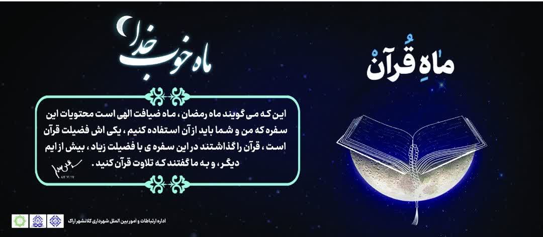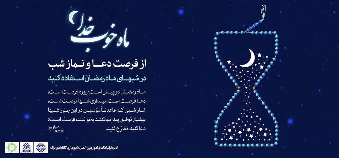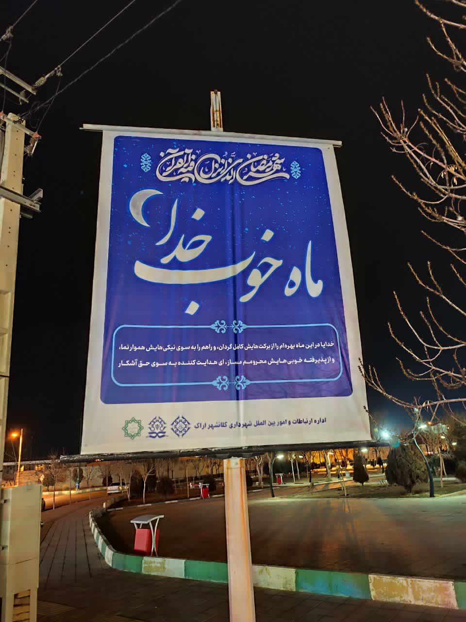 به مناسبت فرارسیدن حلول ماه مبارک رمضان، ماه میهمانی خدا، طرح فرهنگی “ماه خوب خدا” همراه با دعاهای این ماه مبارک، توسط اداره ارتباطات و امور بین الملل شهرداری اراک، در فضای تبلیغاتی شهر اکران شد.