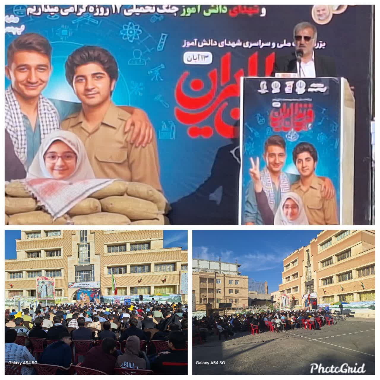 فرماندار ایلام دراین مراسم ضمن گرامیداشت این روز اظهارکرد: اگر دانشآموزان ما درامنیت و عزت به تحصیل علم مشغول هستند،نتیجه خون پاک دانشآموزانی است که برنیمکتهای مدرسه درس غیرت آموختندوجان خود را تقدیم کردند. اکبری بیان کرد: امروز ما وظیفه داریم که نه تنها یاد این عزیزان را زنده